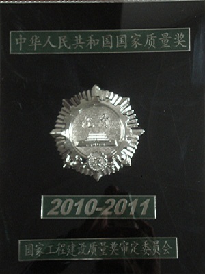 2010-2011年度國家優(yōu)質(zhì)工程獎銀質(zhì)獎獎牌(舟山建設(shè)大廈C座)